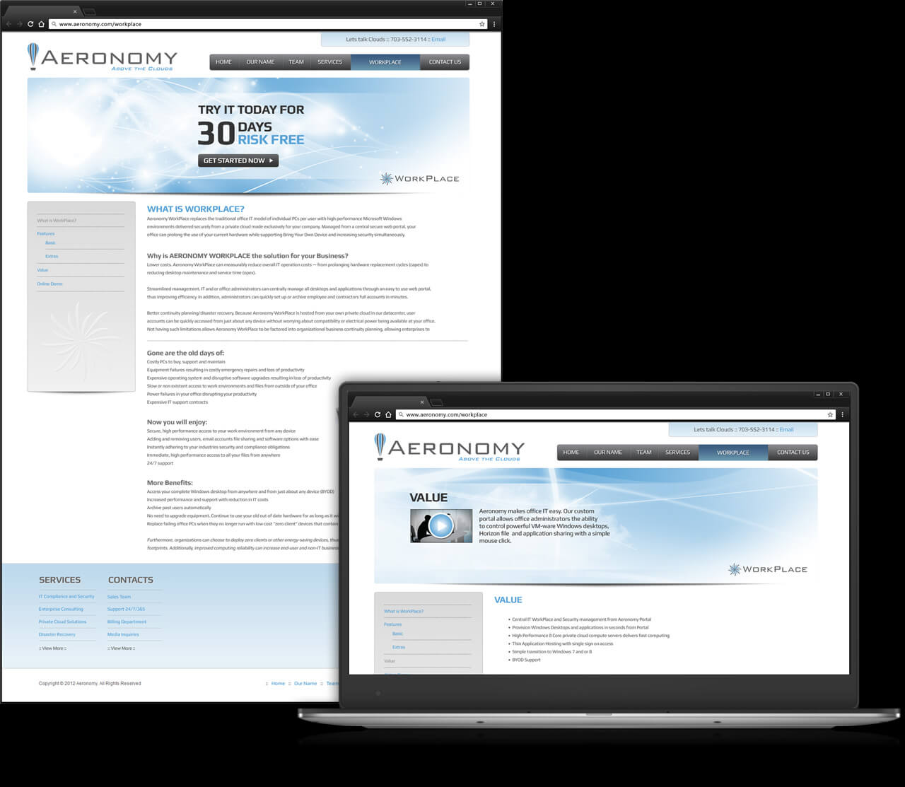 Aeronomy was looking to create a brand for WorkPlace. I designed the logo, banners, and page layouts for this section of the website. Another developer and I worked together to complete this section within an extremely tight deadline.